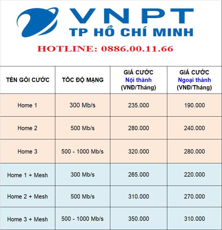 2. Các Gói Cước Lắp Mạng Wifi VNPT Chung Cư The Galleria Metro 6